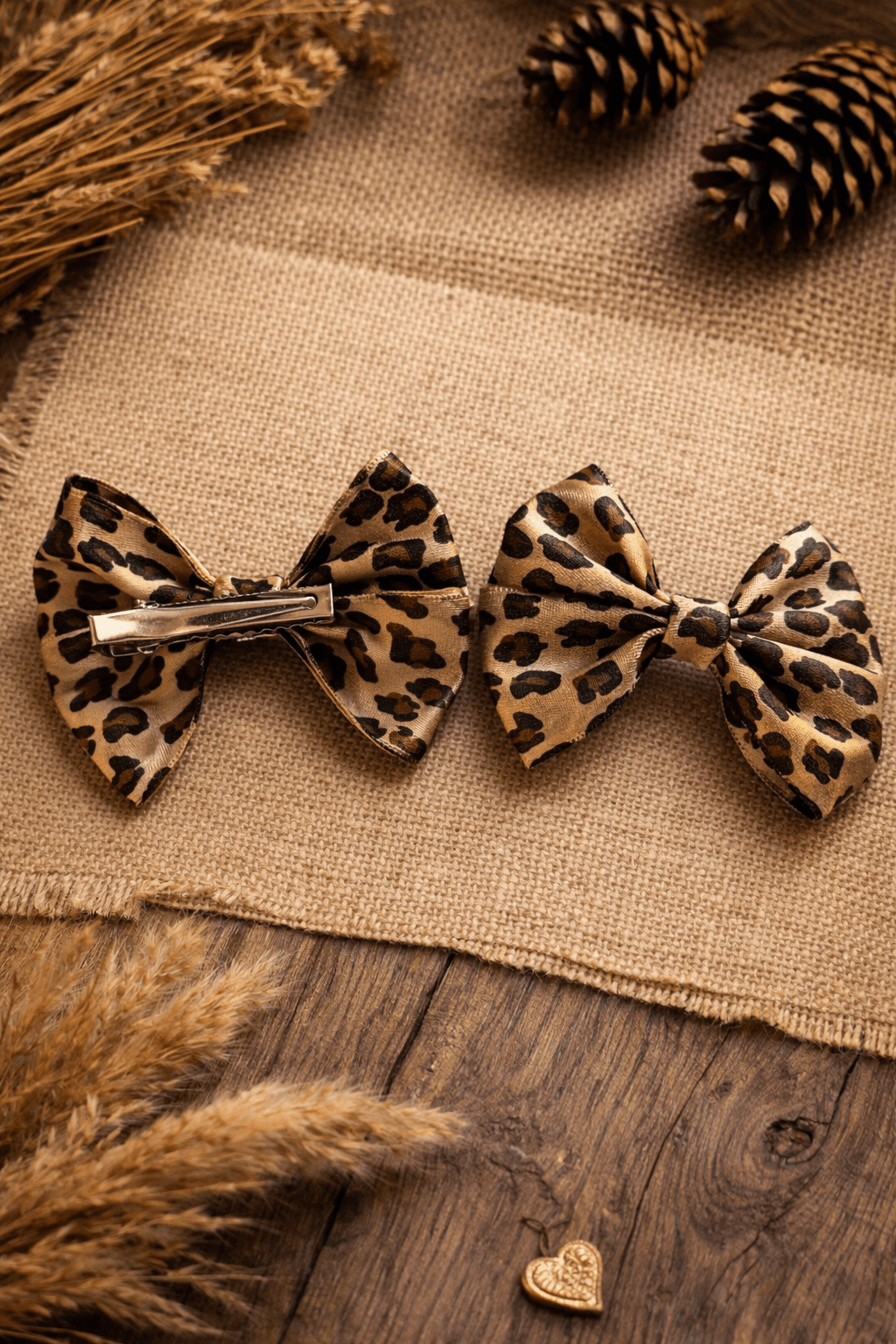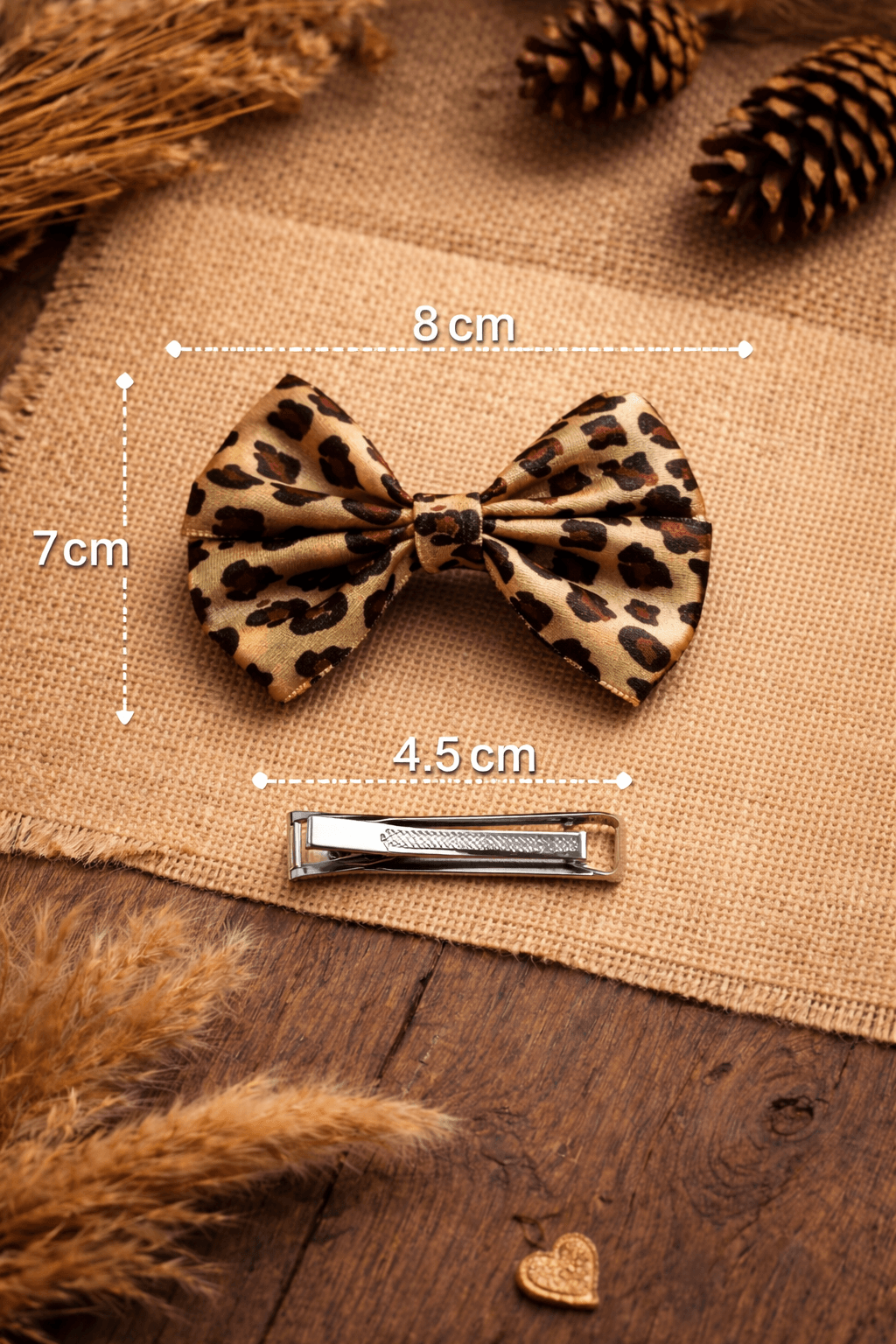 2’li leopar desenli fiyonk toka seti, 4.5 cm klipsli yapısı ve şık görünümüyle günlük kullanım ve özel gün kombinleri için ideal saç aksesuarıdır. Zarif, dikkat çekici ve kullanışlı tasarım.